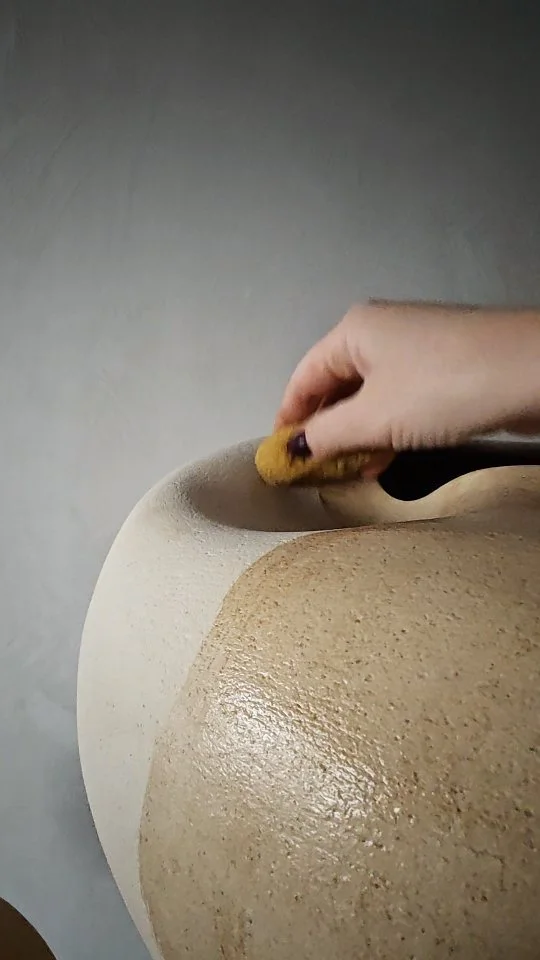 Raw clay traditionally sculpt into soft organic shapes, transformed into modern ceramic pieces combining art, craft and design.